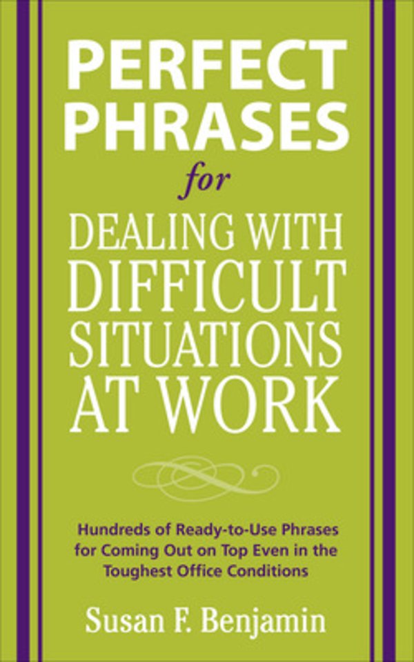 This book provides the right phrase for every situation...every time. No matter how much you love your job, you will inevitably run into difficult situations on the job that test your ability to keep your cool. Written by the author of "Perfect Phrases for Dealing with Difficult People", this handy reference of ready-to-use phrases will help you avoid disasters, steer clear of sticky circumstances with coworkers, and leave you in control.
