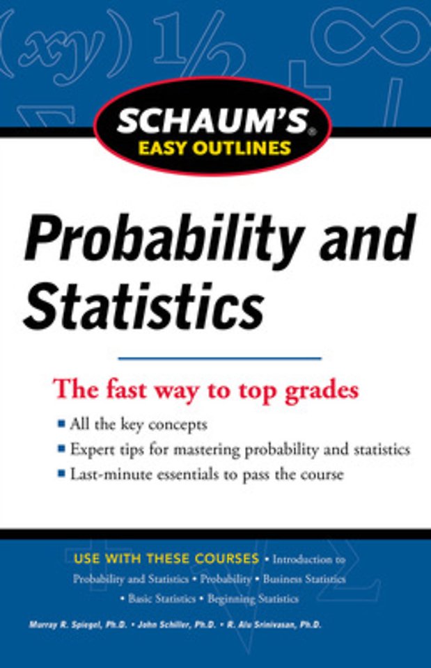 Schaum's Easy Outline of Probability and Statistics is a pared-down, simplified, and tightly focused review of the topic. With an emphasis on clarity and brevity, it features a streamlined and updated format and the absolute essence of the subject, presented in a concise and readily understandable form. Graphic elements such as sidebars, reader-alert icons, and boxed highlights stress selected points from the text, illuminate keys to learning, and give you quick pointers to the essentials.Expert tips for mastering probability and statistics Last-minute essentials to pass the courseCoverage of all course fundamentalsEasy to understand methodologyClear, concise explanations of all probability and statistics conceptsAppropriate for the following courses: Introduction to Probability & Statistics, Probability, Business Statistics, Basic Statistics, and Beginning StatisticsEasily understood review of basic probability and statistics principles