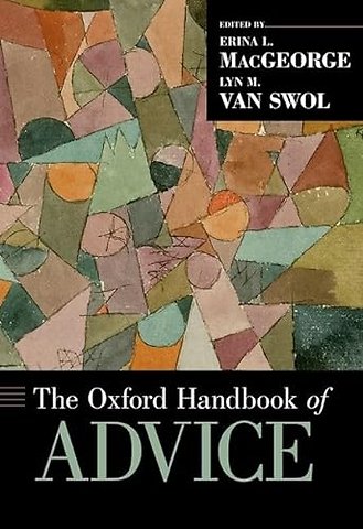 The Oxford Handbook of Advice provides a broad perspective on how advice succeeds and fails, systematically reviewing and synthesizing theory and research on advice from multiple disciplines, such as communication, psychology, applied linguistics, business, law, and medicine. Several chapters explore advice at different levels of analysis, focusing on advisor and recipient roles, advising interactions and relationships, and advice as a resource and connection in groups and networks. Other chapters address advice in particular types of personal relationships (romantic, family) and professional contexts (workplace, health, education, therapy). Contributing authors also consider cultural differences, advice online, and the ethics of advising.
