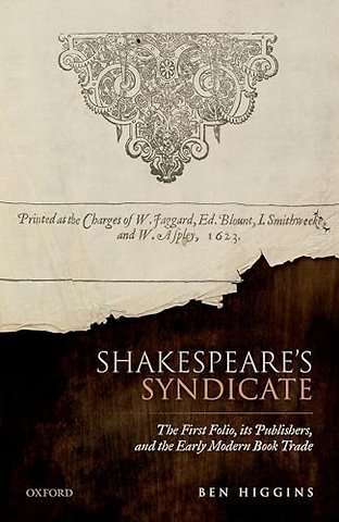 In 1623 a team of stationers published what has become the most famous volume in English literary history: William Shakespeare's First Folio. Who were these publishers and how might their stories be bound up with those found within the book they created? Ben Higgins offers a radical new account of the First Folio by focusing on these four publishing businesses that made the volume. By moving between close scrutiny of the Folio publishers and a wider view of their significance within the early modern book trade, Higgins uses Shakespeare's stationers to explore the 'literariness' of the Folio; to ask how stationers have shaped textual authority; to argue for the interpretive potential of the 'minor' Shakespearean bookseller; and to examine the topography of Shakespearean publication. Drawing on a host of fresh primary evidence from a wide range of sources, including court records, manuscript letters, bookseller's bills, and the literature itself, Shakespeare's Syndicate illuminates our understanding of how this landmark volume was made and what it has meant to scholars since. Moreover, it models exciting new ways of working with stationers and of reading the event of early modern publication itself. This innovative study demonstrates that despite four hundred years of history, the volume at the centre of Shakespeare's canon continues to generate new stories.