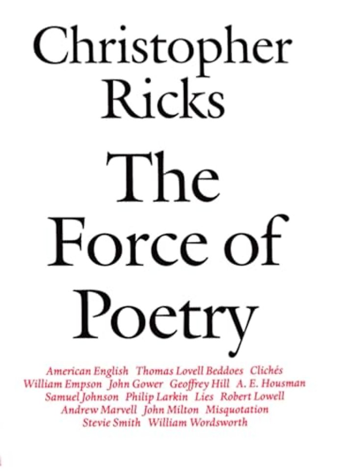 Though published indepenently over many years, each of the essays in this collection of his writings asks how a poets words reveal the `force of poetry', that force - in Dr Johnson's words - `which calls new power into being, which embodies sentiment, and animates matter'. The poets covered range from John Gower, Marvell, and Milton to Wordsworth, Empson, Stevie Smith, Lowell, and Larkin, and the book contains four wider essays on clich'es, lies, misquotations, and American English.