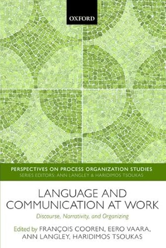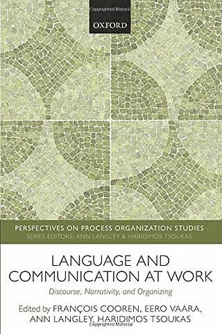 With the growing influence of discursive and narrative perspectives on organizing, organizational scholars are focusing increasing attention on the constitutive role that language and communication play in organizational processes. This view conceptualizes language and communication as bringing organization into being in every instant and is therefore inherently sympathetic to a process perspective. However, our understanding of the role of language in unfolding organizational processes and as a part of organizational action is still limited. This volume brings together empirical and/or conceptual contributions from leading scholars in organization and communication to develop understanding of language and communication as constitutive of work, and also analyze how language and communication actually work to achieve influence in the context of organizations.
