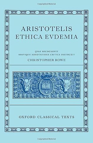 Aristotle's Eudemian Ethics was until recently treated as a poor cousin of the better-known Nicomachean Ethics - poor enough even to have to borrow its three central books (IV-VI) from the latter. The work has now emerged from its relative obscurity; many scholars, indeed, now claim - on the basis of what appear to be sound statistical arguments - that it is the Nicomachean Ethics that has to borrow its Books V-VII from the Eudemian. This critical edition of Aristotle's Eudemian Ethics treats this particular issue as unresolved, including as it does only five books (I-III, VII-VIII), but without prejudice, the three disputed books being treated as already available in the edition of the Nicomachean Ethics in the same series. The new edition of the Eudemian Ethics completes the task, begun by Walzer and Mingay's 1991 Oxford Classical Text edition, of restoring the corrupted text on the basis of a new understanding of the relationships between the extant Greek manuscripts. The three primary manuscripts identified by Harlfinger, along with a fourth identified by the present editor, Christopher Rowe, have been freshly and fully collated, a more extensive apparatus criticus has been provided, and substantial new progress has been made in the restoration of the text. A separate companion volume (Aristotelica: Studies on the text of Aristotle's Eudemian Ethics) contains the arguments for every important editorial choice made in the restoration of the text.