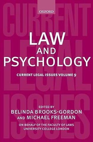 Law and Psychology, the latest volume in the Current Legal Issues series, contains a broad range of essays by scholars interested in the interactions between law and psychology. The volume includes studies of jury trials in terrorism cases, psychological evidence in family law cases, child witness testimony and the role of psychology in punishment theory.