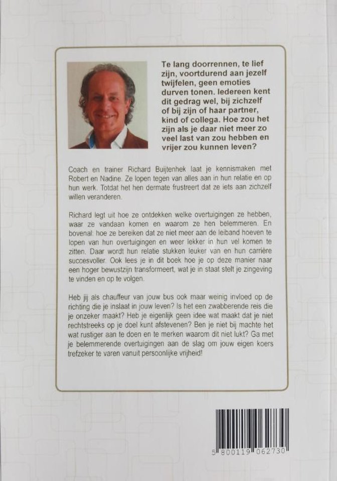 Richard legt uit hoe ze ontdekken welke overtuigingen ze hebben, waar ze vandaan komen en waarom ze hen belemmeren. En bovenal: hoe ze bereiken dat ze niet meer aan de leiband hoeven te lopen van hun overtuigingen en weer lekker in hun vel komen te zitten. Daar wordt hun relatie stukken leuker van en hun carrière succesvoller. Ook lees je in dit boek hoe je op deze manier naar een hoger bewustzijn transformeert, wat je in staat stelt je zingeving te vinden en op te volgen.