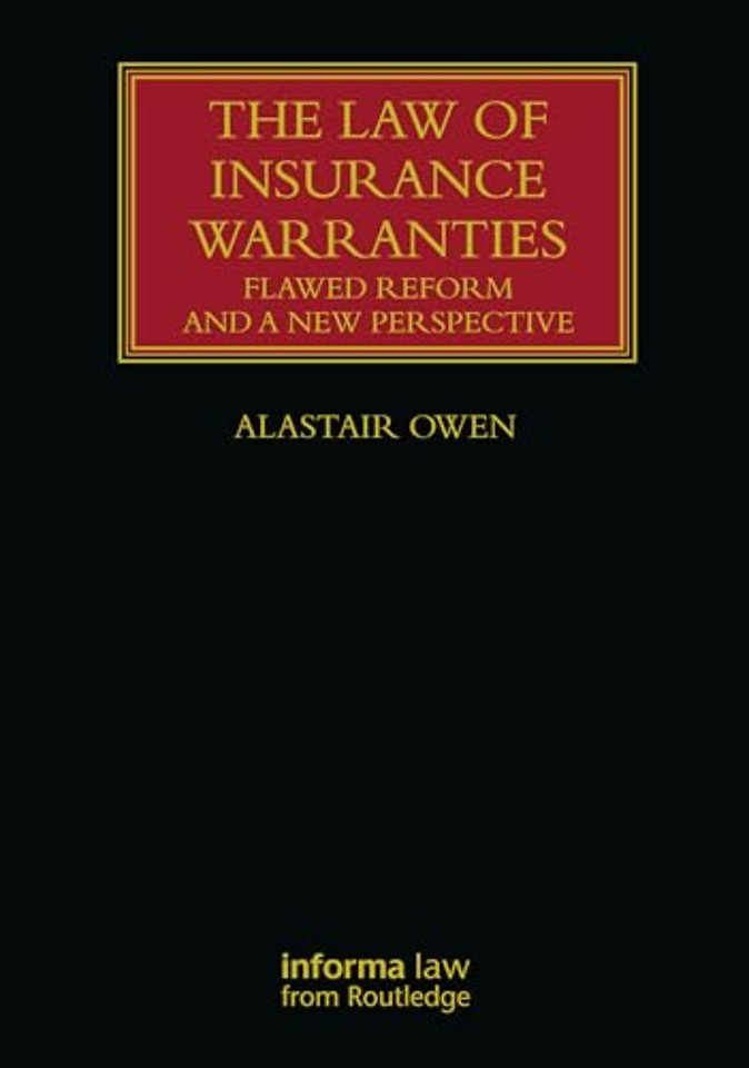 Providing an unprecedented multi-jurisdictional review of the law on insurance warranties and in particular the treatment of warranties in the Insurance Act 2015, as well as outlining an innovative and radical alternative approach to reform, the book will be of considerable interest and value to practitioners, academics and students, as well as to other common law jurisdictions contemplating reform of this area of the law.