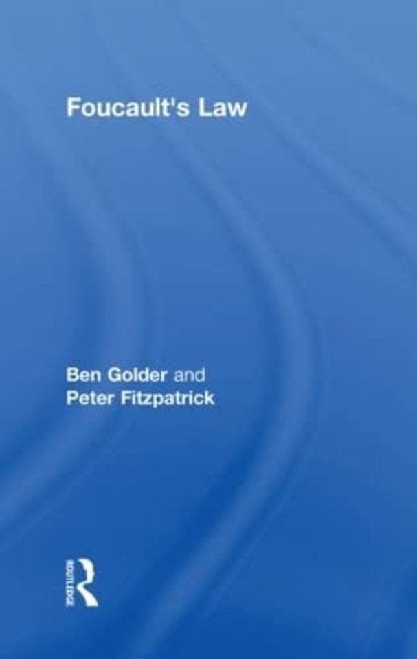Foucault’s Law is the first book in almost fifteen years to address the question of Foucault’s position on law. Many readings of Foucault’s conception of law start from the proposition that he failed to consider the role of law in modernity, or indeed that he deliberately marginalized it. In canvassing a wealth of primary and secondary sources, Ben Golder and Peter Fitzpatrick rebut this argument. They argue that rather than marginalize law, Foucault develops a much more radical, nuanced and coherent theory of law than his critics have acknowledged. For Golder and Fitzpatrick, Foucault’s law is not the contained creature of conventional accounts, but is uncontainable and illimitable. In their radical re-reading of Foucault, they show how Foucault outlines a concept of law which is not tied to any given form or subordinated to a particular source of power, but is critically oriented towards alterity, new possibilities and different ways of being.