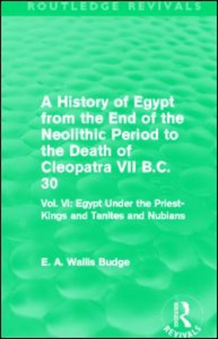 This volume, first published in 1902, is the sixth of eight volumes by Budge dealing with different periods in the history of Egypt. The narrative begins with the reign of Nes-ba-Tettet, the first king of the XXIst Dynasty, and ends with the third king of the XXVIth Dynasty, Psammetichus II. Covering the years 1100-600 B.C., Budge analyses how Egypt changed shape under the rule of different kings, and witnessed both decline in and consolidation of power at varying points. This rich and important period of Egyptian history is explored in a classic work of great value to those interested in Egyptology and archaeology.