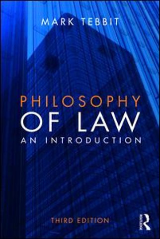 Philosophy of Law: An Introduction provides an ideal starting point for students of philosophy and law. Setting it clearly against the historical background, Mark Tebbit quickly leads readers into the heart of the philosophical questions that dominate philosophy of law today. He provides an exceptionally wide-ranging overview of the contending theories that have sought to resolve these problems. He does so without assuming prior knowledge either of philosophy or law on the part of the reader.