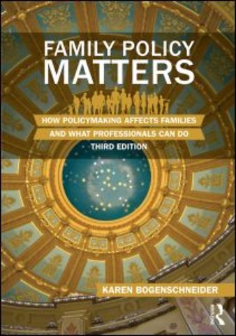 This best-selling text integrates the latest research and cutting-edge practice to make an evidence-based case for family policy. It uses examples from around the globe to explain how families support society and how policies support families. The book also moves beyond analysis to action with pragmatic processes and procedures for improving the effectiveness and efficiency of policies by viewing them through the lens of family impact.