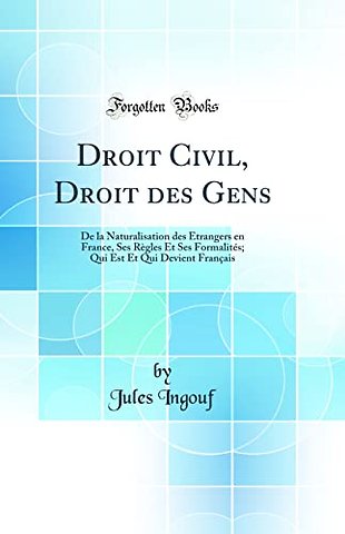 Droit Civil, Droit des Gens: De la Naturalisation des Etrangers en France, Ses Regles Et Ses Formalites; Qui Est Et Qui Devient Francais (Classic Reprint)