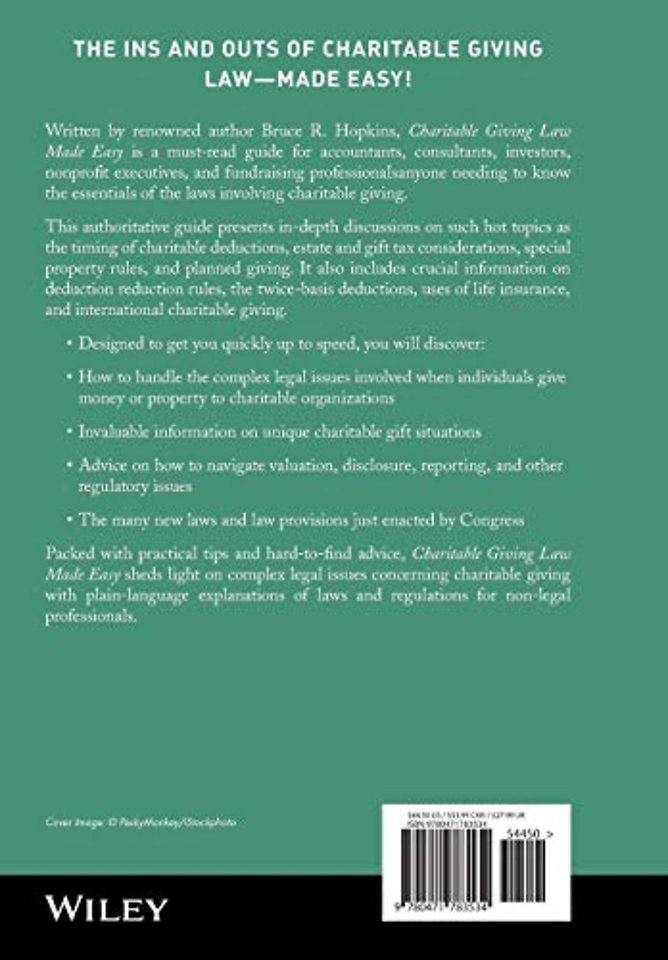 Charitable Giving Law Made Easy sheds light on complex legal issues concerning charitable giving with plain–language explanations of laws and regulations for non–legal professionals.