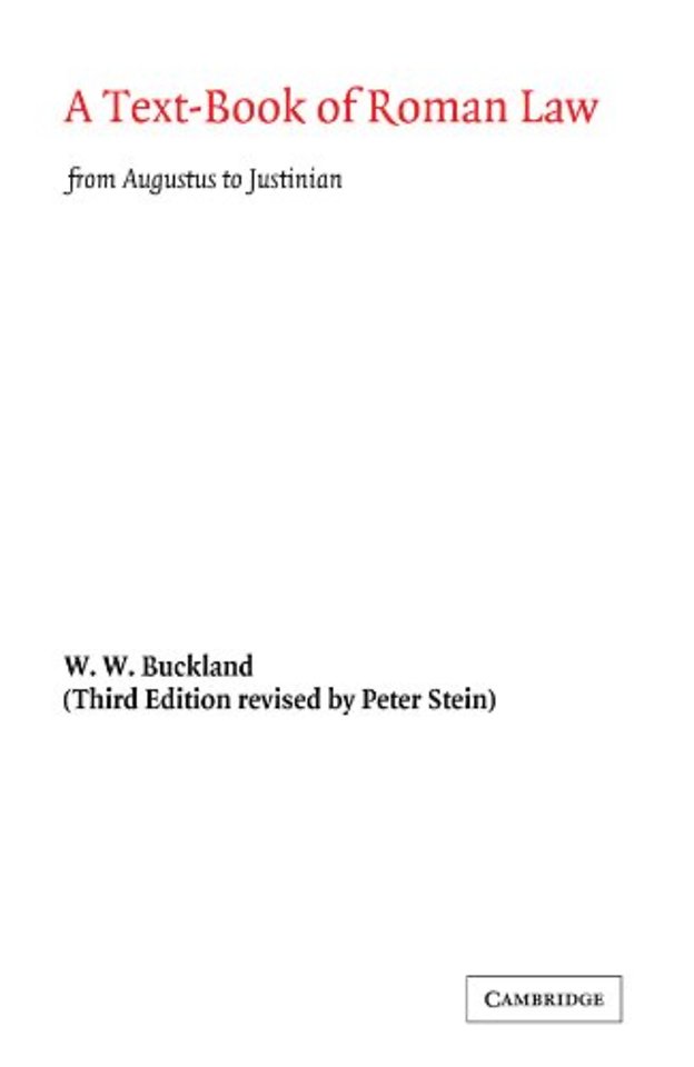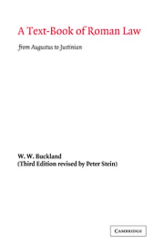 Roman Law, since its earliest days of the XII Tables, to the Justinian code over one thousand years later, is arguably the most influential body of law ever developed, remaining at the core of European legal systems until the end of the eighteenth century and informing the civil law and (to a lesser extent) the common law to this day. The first edition of Peter Buckland's classic textbook on the subject was published in 1921. Professor Peter Stein's revised third edition published in 1963 updated the original so that it reflected Professor Buckland's own later thoughts on the subject until his death in 1945. This revised edition examines the law of the Empire (or classical law) and also tracks later developments, including the legislation of Justinian. It is primarily concerned with the law but historical developments are also kept in view, so as to give the student the broadest perspective on the subject.