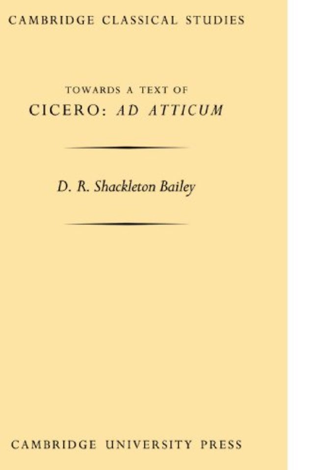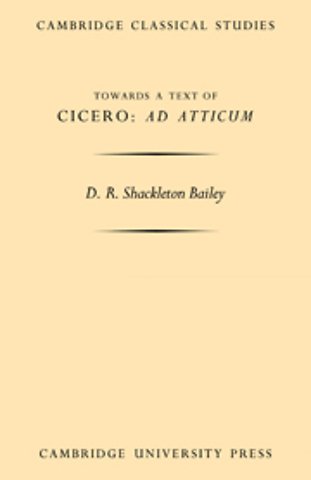 Like Dr Shackleton Bailey's Propertiana, this book gives a series of difficult or corrupt passages with his discussion of the difficulty and suggestions for emendation. Dr Shackleton Bailey also prepared a text of Ad Atticum IX–XVI, which appeared in the series of Oxford Classical texts and this volume is intended as preparatory to that text. This is one of the Transactions of the Cambridge Philological Society.