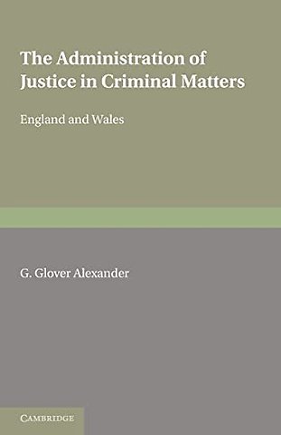 This second edition of Alexander's The Administration of Justice in Criminal Matters was first published in 1915, and reissued with a supplement in 1919. Within this text, Alexander has endeavoured to capture not simply the components of the criminal justice system, but the very spirit in which justice is administered. Although the book's focus is primarily on law, modern readers will appreciate the extent to which themes of history, politics and sociology are integral to the arguments of the text. Those with an interest in the history of criminal administration will also find that much is offered in these pages, as they encounter a detailed and fascinating summary of the structure and practices of the criminal justice system at the beginning of the twentieth century.