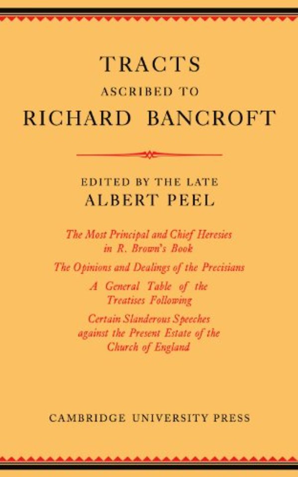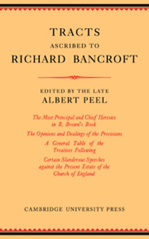 In the library of St John's College, Cambridge is a manuscript thus catalogued by M. R. James: 'Certain Slanderous Speeches against the present Estate of the Church of England, published to the people by the Precisians, with the particular causes that have so stirred them, and blasphemous and seditious positions held by them, with refutations of the same, and an Index of Browne's heresies with their refutation.' The manuscript is a valuable conspectus of the state of the controversy between Presbyterian and Episcopalian. This is Dr Peel's 1953 transcription of the manuscript. In an introductory essay he argues that the author is Richard Bancroft, Bishop of London (1597–1604) and Archbishop of Canterbury (1604–10), who played a prominent part in the history of the Church of England at a critical period, and whom the Presbyterian Andrew Melville described as 'the capital enemy of all the Reformed Churches in Europe'.