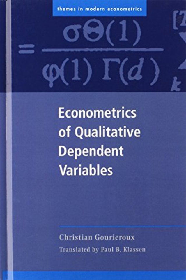 This textbook introduces students progressively to various aspects of qualitative models and assumes a knowledge of basic principles of statistics and econometrics. Inferring qualitative characteristics of data on socioeconomic class, education, employment status, and the like - given their discrete nature - requires an entirely different set of tools from those applied to purely quantitative data. Written in accessible language and offering cogent examples, students are given valuable means to gauge real-world economic phenomena. After the introduction, early chapters present models with endogenous qualitative variables, examining dichotomous models, model specification, estimation methods, descriptive usage, and qualitative panel data. Professor Gourieroux also looks at Tobit models, in which the exogenous variable is sometimes qualitative and sometimes quantitative, and changing-regime models, in which the dependent variable is qualitative but expressed in quantitative terms. The final two chapters describe models which explain variables assumed by discrete or continuous positive variables.
