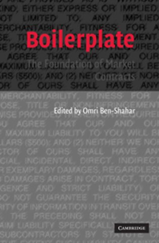 Boilerplate, the fine print of standard contracts, is more prevalent than ever in commercial trade and in electronic commerce. But what is in it, beyond legal technicalities? Why is it so hard to read and why is it often so one-sided? Who writes it, who reads it, and what effect does it have? The studies in this volume question whether boilerplate is true contract. Does it resemble a statute? Is it a species of property? Should we think of it as a feature of the product we buy? Does competition improve boilerplate? Looking at the empirical reality in which various boilerplates operate, leading private law experts reveal subtle and previously unrecognized ways in which boilerplate clauses encourage information flow, but also reduce it; how new boilerplate terms are produced, and how innovation in boilerplate is stifled; how negotiation happens in the shadow of boilerplate, and how it is subdued. They offer a new explanation as to why boilerplate is often so one-sided. With emphasis on empiricism and economic thinking, this volume provides a more nuanced understanding of the 'DNA' of market contracts, the boilerplate terms.
