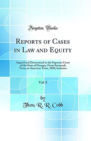 Reports of Cases in Law and Equity, Vol. 8: Argued and Determined in the Supreme Court of the State of Georgia, From Savannah Term, to Americus Term, 1850, Inclusive (Classic Reprint)