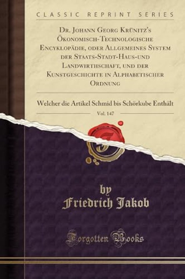 Dr. Johann Georg Krunitz's OEkonomisch-Technologische Encyklopadie, oder Allgemeines System der Staats-Stadt-Haus-und Landwirthschaft, und der Kunstgeschichte in Alphabetischer Ordnung, Vol. 147: Welcher die Artikel Schmid bis Schoerkube Enthalt