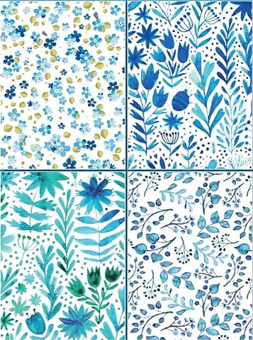 Set of Four Magnetic Notepads: Blue Abstract