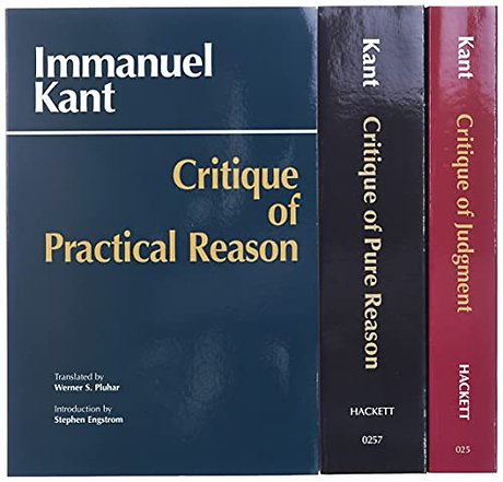 A 3-volume set that includes: "Critique of Pure Reason"; "Critique of Practical Reason"; and, "Critique of Judgment".