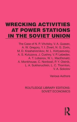 Wrecking Activities at Power Stations in the Soviet Union (1933) is a valuable historical document that presents a verbatim report of the trials of various Soviet and British engineers and workers accused of acts of sabotage against the Soviet energy infrastructure. It is a rare insight into the day to day lives of such workers, and the workings of Soviet bureaucracy.