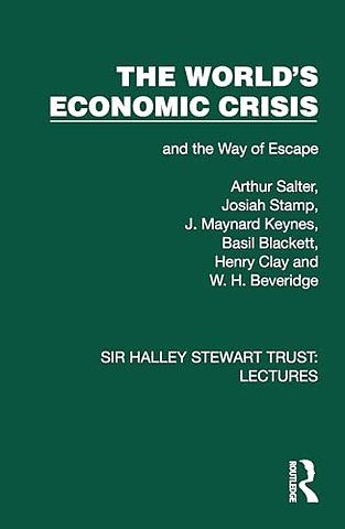 Originally published in 1932, this volume The World's Economic Crisis: and the Way of Escape contains six lectures delivered under the auspices of the Sir Halley Stewart Trust in 1931. All distinguished economists of the time this book is an excellent view of the world in the early twentieth century.