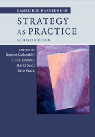 Preface to the second edition; Introduction: what is strategy as practice?; Part I. Ontological and Epistemological Questions: 1. Practice in research: phenomenon, perspective and philosophy; 2. Epistemological alternatives for researching strategy as practice: building and dwelling worldviews; 3. Making strategy: meta-theoretical insights from Heideggerian phenomenology; 4. Constructivist paradigms: implications for strategy as practice research; 5. Constructing contribution in strategy-as-practice research; 6. The ongoing challenge of developing cumulative knowledge about strategy as practice; 7. Practical relevance of practice-based research on strategy; Part II. Theoretical Resources: Social Theory: 8. Giddens, structuration theory and strategy as practice; 9. An activity theory approach to strategy as practice; 10. A Bourdieusian perspective on strategizing; 11. An economies-of-worth perspective on strategy as practice: justification, valuation and critique in the practice of strategy; 12. A Wittgensteinian perspective on strategizing; 13. A Foucauldian perspective on strategic practice: strategy as the art of (un)folding; 14. A narrative approach to strategy as practice: strategy-making from texts and narratives; 15. Actor-network theory and strategy as practice; Part III. Theoretical Resources: Organization and Management Theories: 16. An institutional perspective on strategy as practice; 17. Relating strategy as practice to the resource-based view, capabilities perspectives and the micro-foundations approach; 18. Theory of routine dynamics and connections to strategy as practice; 19. Identity work as a strategic practice; 20. Sensemaking in strategy as practice: a phenomenon or a perspective?; 21. The communicative constitution of strategy-making: exploring fleeting moments of strategy; 22. Analytical frames for studying power in strategy as practice and beyond; 23. A critical perspective on strategy as practice; Part IV. Methodological Resources: 24. Using ethnography in strategy-as-practice research; 25. Researching strategists and their identity in practice: building 'close-with' relationships; 26. Studying strategizing through biographical methods: narratives of practices and life trajectories of practitioners; 27. Researching everyday practice: the ethnomethodological contribution; 28. Critical discourse analysis as methodology in strategy-as-practice research; 29. Studying strategy as practice through historical methods; 30. Quantitative methods in strategy-as-practice research; Part V. Substantive Topic Areas: 31. Strategic planning as practice; 32. Meetings and workshops as strategy practices; 33. The role of materiality in the practice of strategy; 34. Strategy-as-practice research on middle managers strategy work; 35. Participation in strategy work; 36. The role of emotions in strategizing; Index.