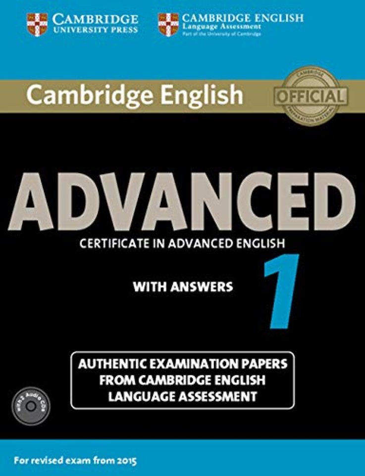 Four official examination papers for the 2015 revised Cambridge English: Advanced (CAE) examination from Cambridge English Language Assessment. These examination papers for the 2015 revised Cambridge English: Advanced (CAE) exam provide the most authentic exam preparation available, allowing candidates to familiarise themselves with the content and format of the exam and to practise useful exam techniques. The Student's Book with answers is perfect for independent exam practice. The accompanying Audio CDs contain the recordings for the Listening test. The Student's Book is also available as a 'without answers' edition for classroom use. The Audio CDs are also available separately.