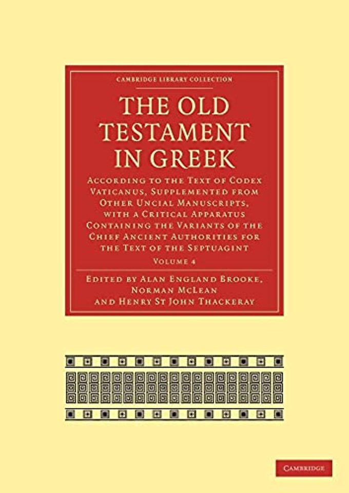 This incomplete, early twentieth-century edition was one of the first modern attempts to bring textual criticism to bear on the Septuagint, the Greek version of the Hebrew scriptures which originated in the third century BCE. It is still widely consulted today. Originally issued in nine parts between 1906 and 1940, this reissue is bound in four volumes. This, the final volume, contains the books of Esther, Judith, and Tobit. Following Swete's smaller Septuagint (1887–1894) the running text is that of Codex Vaticanus (B) supplemented by Codex Alexandrinus (A) or N when B is defective. The edition includes an extensive critical apparatus, citing key uncial manuscripts and fragments, twenty-seven cursive manuscripts, many freshly collated for the edition, the Sahidic, Ethiopic, Syriac and Old Latin versions, and quotations from Latin writers including Cyprian and Augustine. It remains an invaluable resource for the study of the Septuagint.