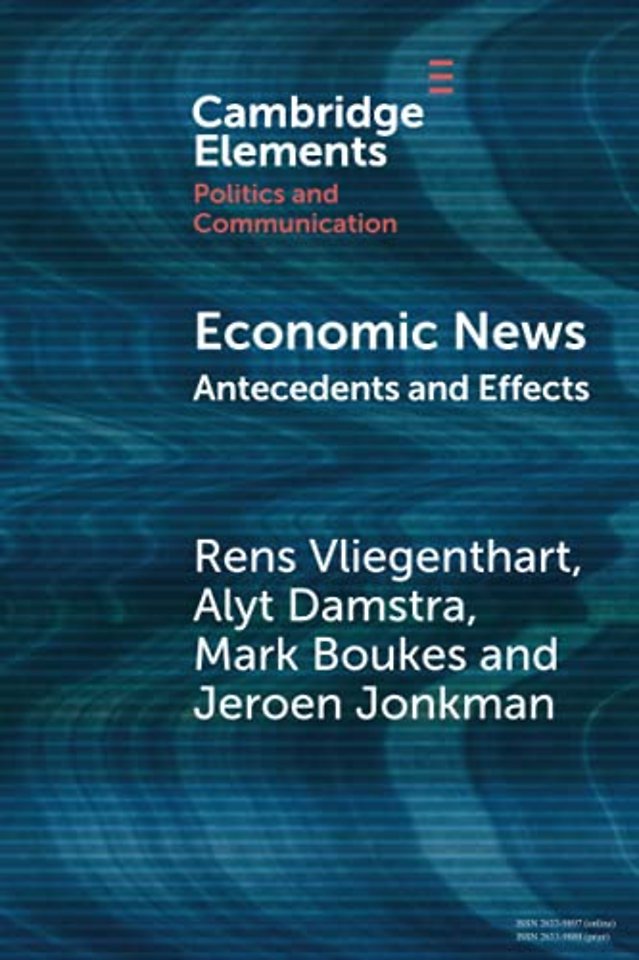 This Element provides a concise review of the existing literature on content, antecedents and consequences of economic news coverage. It tests and refines prominent assumptions and hypotheses in this area. Relying on communication science theories such as framing, news values and media dependency theories, we first outline and explain how media cover the economy. Additionally, it demonstrates that coverage has a fundamental impact above and beyond the state of the economy, both on economic perceptions and political attitudes of citizens, as well as on political decision makers and media reputation of a wide variety of organizations.