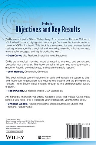 From the framework’s inception in the 1980s to its popularity in today’s hyper-competitive environment, OKRs make work more engaging and feature frequent feedback cycles that enable workers to see the progress they make at work each and every day. This book shows you everything you need to know to implement OKRs effectively. Understand the basics of OKRs and their day-to-day useLearn how to gain the executive support critical to a successful implementationMaintain an effective program with key assessment tips Tailor the OKRs framework to your organization’s needs Objectives and Key Results is your key resource for designing, planning, implementing, and maintaining your OKRs program for sustainable company-wide success.