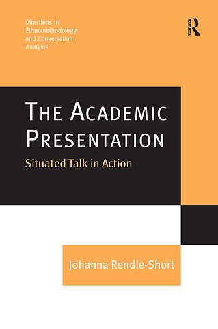 How is the task of giving a presentation accomplished? In this insightful book Johanna Rendle-Short unpacks this seemingly simple task to show the complexity that underlies it. Examining the academic presentation as a case in point, she details how seminar presenters interact with the audience and objects around them to produce a coherent whole. Through detailed examination of talk-in-interaction the book throws light on one instance of talk as situated practice, demonstrating both the ordinariness of the academic presentation, and its intricate complexity. While audience members recognize that a seminar is underway, this book shows how this recognition comes about. The Academic Presentation will greatly interest scholars of talk and interaction analysis, situated talk, ethnomethodology and conversation analysis.