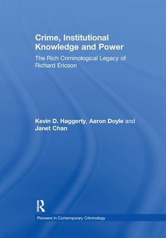 Criminology lost a world leader with the untimely death of Richard Ericson in 2007. Ericson was one of the most prolific, influential and widely cited criminologists of his generation, producing monumental and pathbreaking works on how the criminal justice system and other key institutions attempt to control crime, manage risk and produce security. This volume, edited by three of Professor Ericson's colleagues and co-authors, presents a sampling of Ericson's acclaimed work on such topics as juvenile justice, policing, the courts, the media, the insurance industry, and national security. The book is required reading for scholars interested in understanding the dynamics of crime, risk and security and for those eager to learn more about one of the field's most important and innovative researchers and scholars.