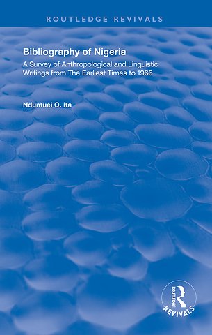 First published in 1971, this major bibliography devoted to Africa’s most populous country – Nigeria – is therefore a timely contribution which must be welcomed by all. The Bibliography of Nigeria contains over 5,400 entries in archaeology, all branches of anthropology, linguistic and relevant historical and sociological studies. Many of the entries carry indicative or informative annotations which have greatly enhanced the usefulness of the work.