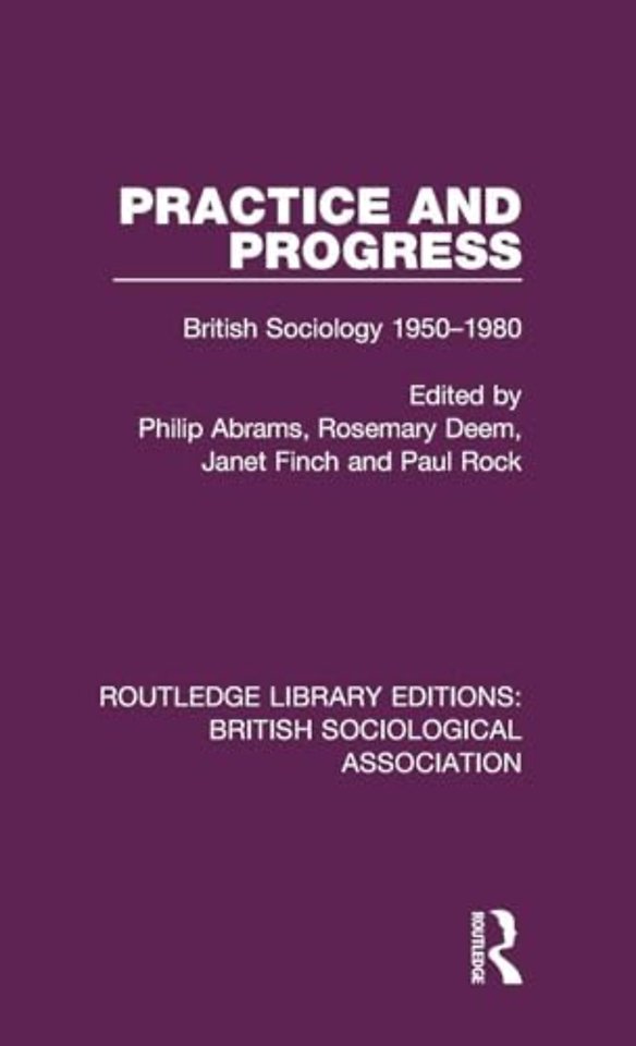 Originally published in 1981 Practice and Progress is a collection examining the changes that have occurred in the theories, methodologies and practices of sociology, in the institutional and educational setting of the subject, and in British society. The themes pursued include the professionalization of sociology its development and standing in the universities; the impact on it of Marxism and feminism and the major debates over positivism and empiricism, quantitative methods, linguistic analysis; and numerous other crucial methodological and theoretical concerns.