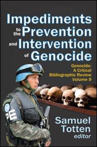 Bartrop and Totten argue that realpolitik is the major impediment to the elimination of genocide. Campbell examines the lack of political will to confront genocide, and Theriault describes how denial becomes an obstacle to intervention against genocide. Loyle and Davenport discuss how intervention is impeded by a lack of reliable data on genocide violence, and Macgregor presents an overview of the influence of the media. Totten examines how the UN Convention on Genocide actually impedes anti-genocide efforts; and how the institutional configuration of the UN is itself often a stumbling block.