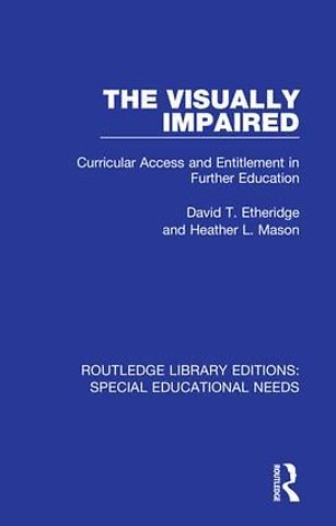 First published in 1994. The chapters that make up this book are not primarily about disability or visual impairment. What they do address is the right of all people to have further education and training made available in ways that meet their needs regardless of gender, race, age and ability. This book examines their entitlement to this education and some of the ways in which it can be made accessible. The issues raised are relevant to all people entering further education and training.