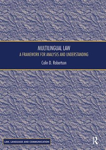This book introduces and explores the concept of multilingual law. Providing an overview as to what is 'multilingual law', the study establishes a new discourse based on this concept, which has hitherto lacked recognition for reasons of complexity and multidisciplinarity. The need for such a discourse now exists and is becoming urgent in view of the progress being made towards European integration and the legal and factual foundation for it in multilingualism and multilingual legislation.