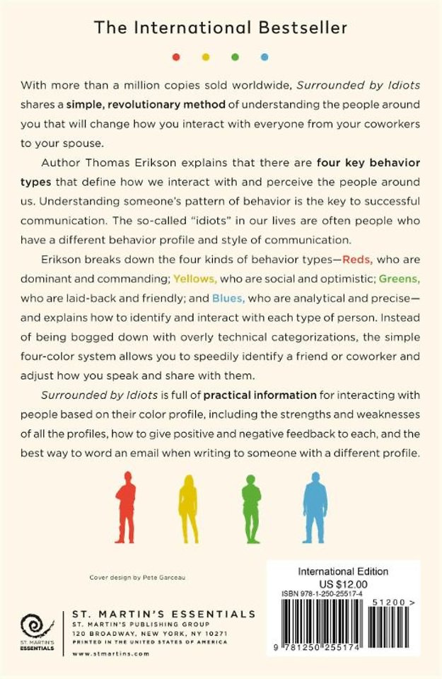 Surrounded by Idiots is an international phenomenon, selling over 1.5 million copies worldwide. It offers a simple, yet ground-breaking method for assessing the personalities of people we communicate with - in and out of the office - based on four personality types (Red, Blue, Green and Yellow), and provides insights into how we can adjust the way we speak and share information.