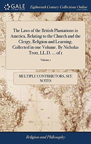 The Laws of the British Plantations in America, Relating to the Church and the Clergy, Religion and Learning. Collected in one Volume. By Nicholas Trott, LL.D. ... of 1; Volume 1