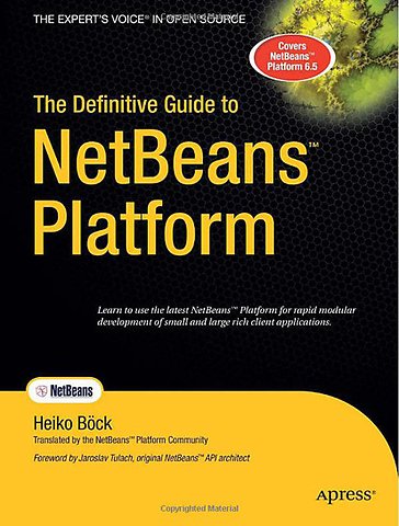 The original German book on which this title is based was well received. The NetBeans Platform Community has put together this English translation, which author Heiko Böck updated to cover the latest NetBeans Platform 6.5 APIs. With an introduction by known NetBeans Platform experts Jaroslav Tulach, Tim Boudreau, and Geertjan Wielenga, this is the most up-to-date book on this topic at the moment.
