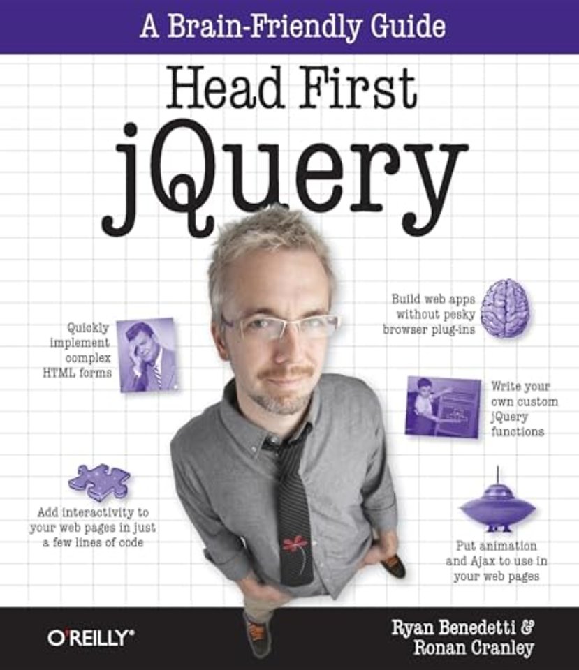We think your time is too valuable to wast struggling with new concepts. Using the latest research in cognitive science and learning theory to craft a multisensory learning experience. 'Head First jQuery' uses a visually rich format designed for the way your brains works, not a text-heavy approach that puts you to sleep.