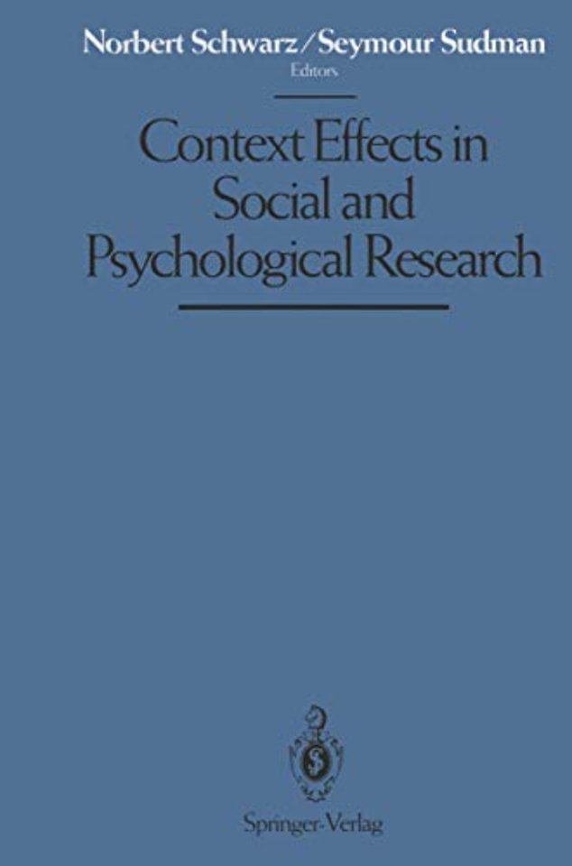 0 e The contributors to this book review our current knowledge of context effects in survey research, psychological testing, and social judgement. Drawing on recent developments in cognitive psychology, they offer theoretical accounts of the conditions that lead to the emergence of various context effects and report a number of new experimental studies. At stake now are clear, practical needs in the structuring of reliable tests, and a strong interest to develop a coherent theoretical framework to assess and scrutinize context effects, in addition to the desire to align some of the findings in survey research studies with the discoveries made in the information-processing field. This book attests to a fruitful dialogue between cognitive psychologists and survey researchers, as the cognitive processes initiated by question probes are really beginning to be understood and context effects classified and differentiated.