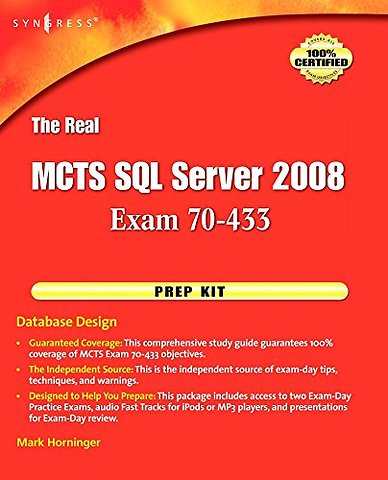 The Real MCTS SQL Server 2008 Exam 70-433 Prep Kit prepares readers for the Microsoft Certified Technology Specialist exam: SQL Server 2008, Database Development. This is a new exam in the SQL Server product family, and is comprised of some objectives from exam 70-431 from SQL Server 2005, and covers new, expanded query capabilities in SQL Server 2008. According to Microsoft: