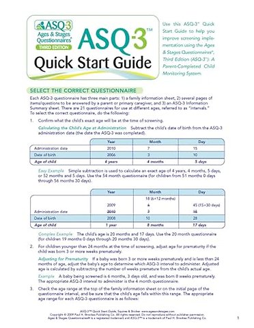 Ages & Stages Questionnaires® (ASQ®–3): Quick St – A Parent–Completed Child Monitoring System
