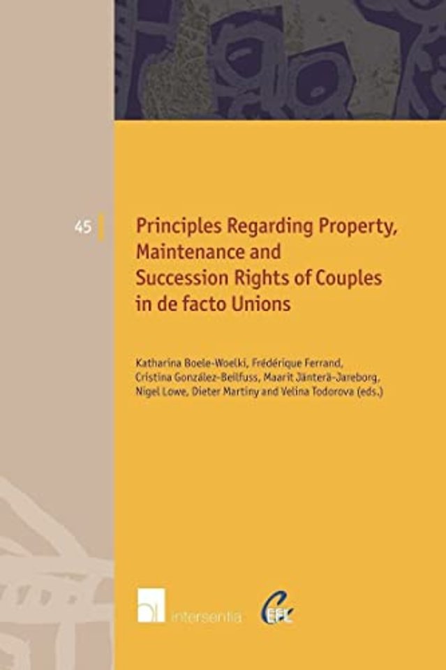 The Principles of European Family Law drafted by the CEFL are aimed at contributing to the harmonisation of family law in Europe. The first sets of Principles cover Divorce and Maintenance Between Former Spouses, Parental Responsibilities and Property Relations between Spouses respectively. This book focuses on Principles Regarding Property, Maintenance and Succession Rights of Couples in de facto Unions. The CEFL has developed a comprehensive and original set of rules which may be a source of inspiration for legislating the rights and duties of couples who have not formalised their relationship. In their provisions on specific issues, the Principles opt for workable solutions which aim to avoid unnecessary hardship and disputes. The Principles should be used as a frame of reference by policy makers and legislators.