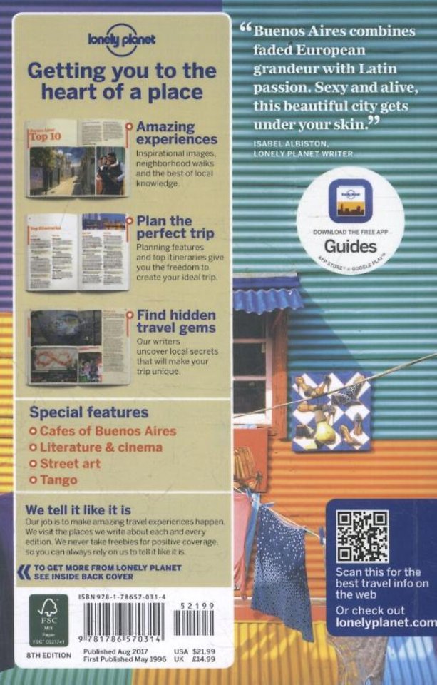 Lonely Planet Buenos Aires is your passport to the most relevant, up-to-date advice on what to see and skip, and what hidden discoveries await you. Catch the historic sights of Plaza de Mayo, get a backstage tour of the Teatro Colon, or immerse yourself in a game of futbol; all with your trusted travel companion.