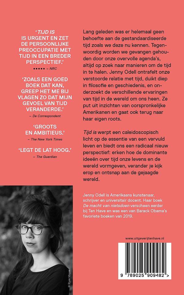 Ons dagelijks leven wordt geregeerd door de klok. Tijdsmanagement is een populaire methode om meer uit je dag te halen en productiever te worden. Jenny Odell laat zien dat tijd meer is dan iets abstracts en meetbaars. Tijd is verbonden aan plaats en aan leven. Het doet ons voelen dat we leven en geeft ons de kracht om in actie te komen.
